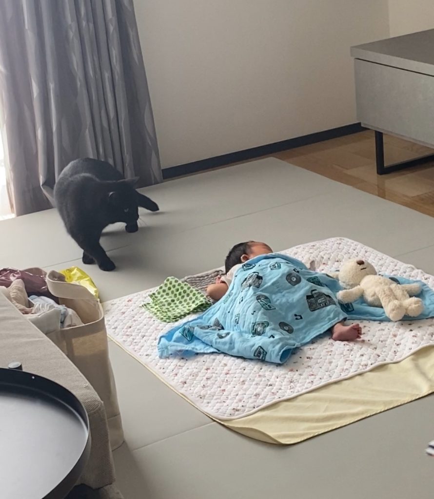 こんな感じで2匹の猫と赤ちゃんの生活は続きます!